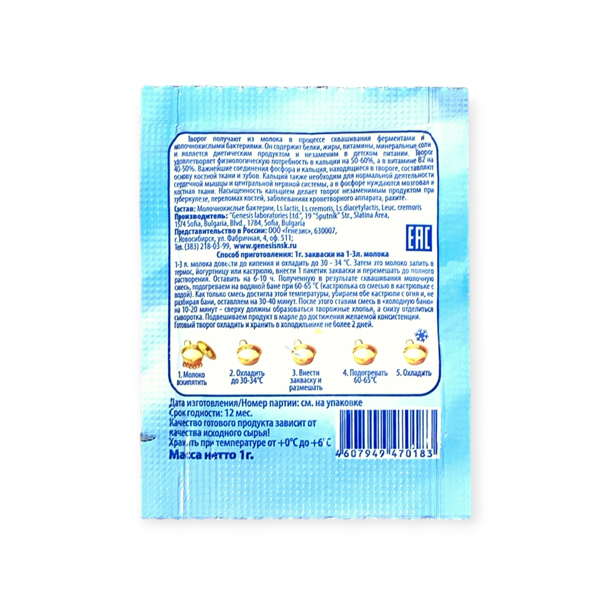 Закваска Творожок Genesis, 1 пакет от 100 руб. с доставкой. Пункт выдачи в Егорьевске. Интернет магазин по сыроделию. Всё всегда в наличии.